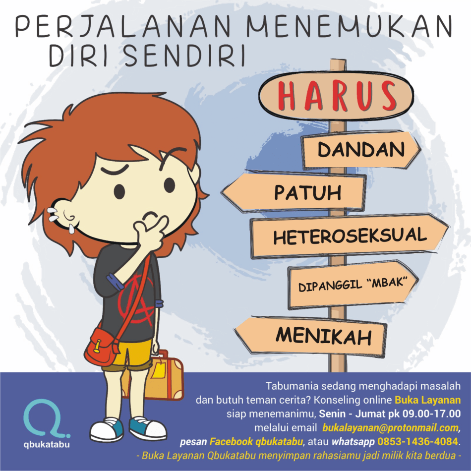 Mari kita kembali lagi ke hari saat kamu dilahirkan. Pada hari tersebut, orang lain lah yang memberi sebutan laki-laki atau perempuan dan memberikan pakaian warna biru atau pink, rok atau celana. Beranjak remaja, orang lain juga yang menentukan peran, termasuk kepada siapa Tabumania harus merasa tertarik. Semua itu dilakukan tanpa bertanya kepadamu. Pakaian yang dikenakan, mainan yang dibelikan, peran yang dilekatkan hingga perasaan yang diharuskan adalah bentukan orang-orang disekitarmu, yang tidak berdasarkan pada keinginan dan pencarianmu sebagai individu. Dengan demikian, banyak diantara Tabumania yangbaru menyadari situasi-situasi ini ketika sudah dewasa; dan ini sama sekali hal yang sangat wajar. Mau tau kenapa?