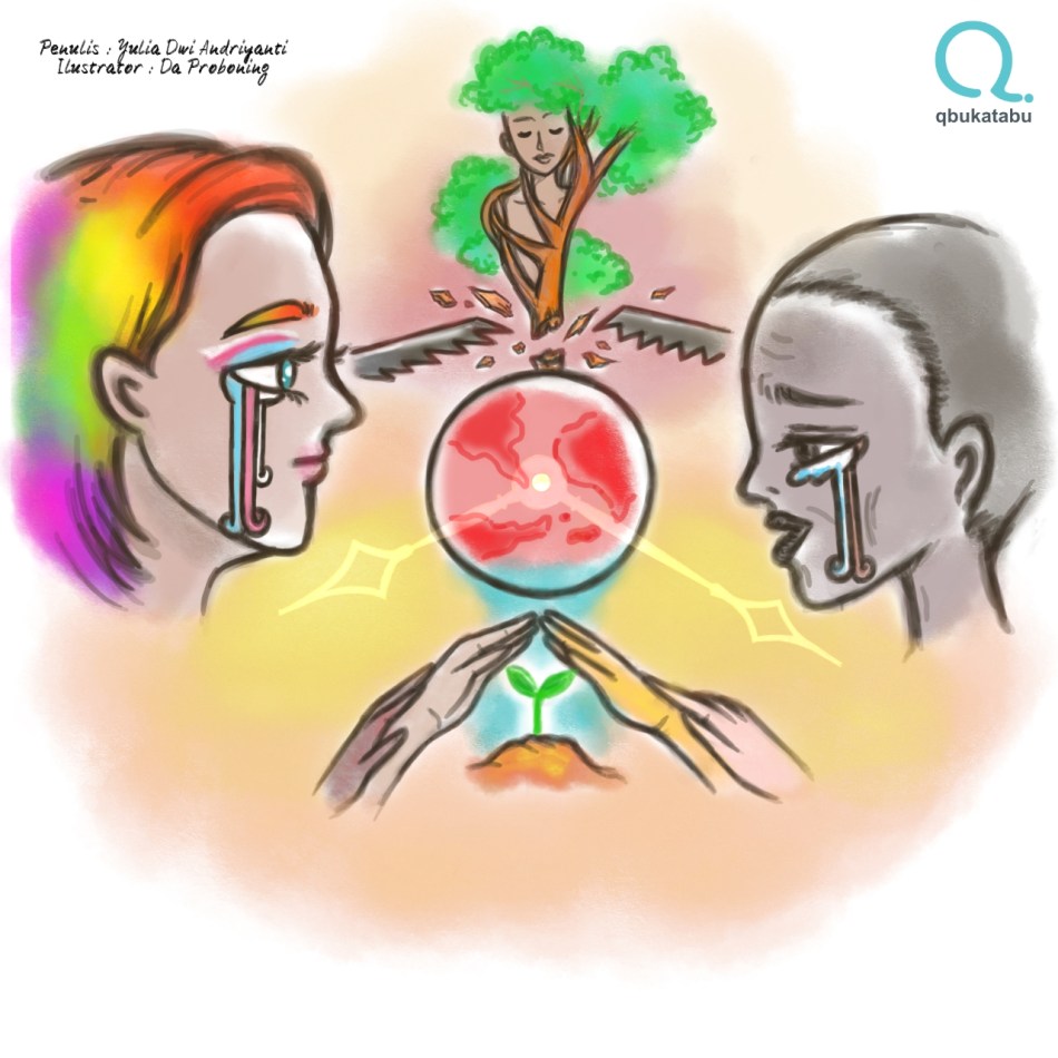 Darurat iklim ini tentunya bukan hanya menjadi perjuangan sehari-hari masyarakat adat. Ia menjadi perjuangan setiap orang, tidak terkecuali orang-orang queer dan trans*. Orang-orang queer dan trans* pun terkena dampak akibat bencana yang terjadi. Kerap kali saat penanganan, pemberian bantuan darurat serta pemulihan, orang-orang queer dan trans* kesulitan mendapatkan berbagai akses tersebut. Kesulitan terjadi karena konsep penanganan paska bencana yang sangat terfokus pada pemahaman yang cis-hetero. Kesulitan dalam akses ini juga muncul karena stigma yang dikukuhkan bahwa sebuah bencana terjadi karena dosa dan kesalahan dari orang-orang queer dan trans*. Alhasil, peminggiran semakin kuat padahal kebutuhan mendasar paska kondisi krisis harus segera dipenuhi. Orang-orang queer dan trans* semakin dimiskinkan dan dituntut untuk bangkit dan memulihkan diri sendiri di tengah kondisi fisik dan mental yang buruk, situasi kehilangan tempat tinggal, bahkan orang-orang yang dicintai.