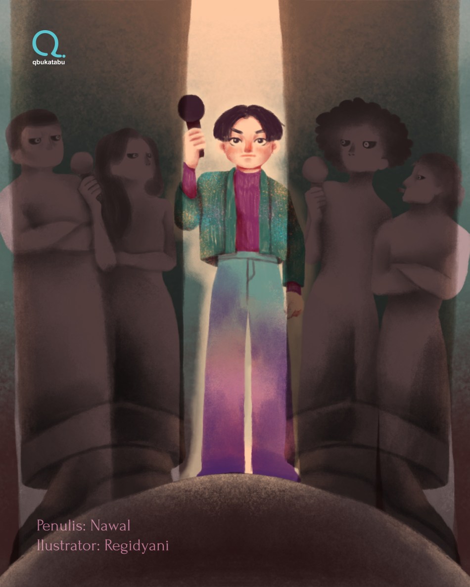 Selama ini, Arka menyembunyikan identitasnya sebagai seorang queer. Kadang, ia muak mendengar celoteh seksis supaya terlihat asyik dari mereka calon-calon pemimpin kabupaten ini.